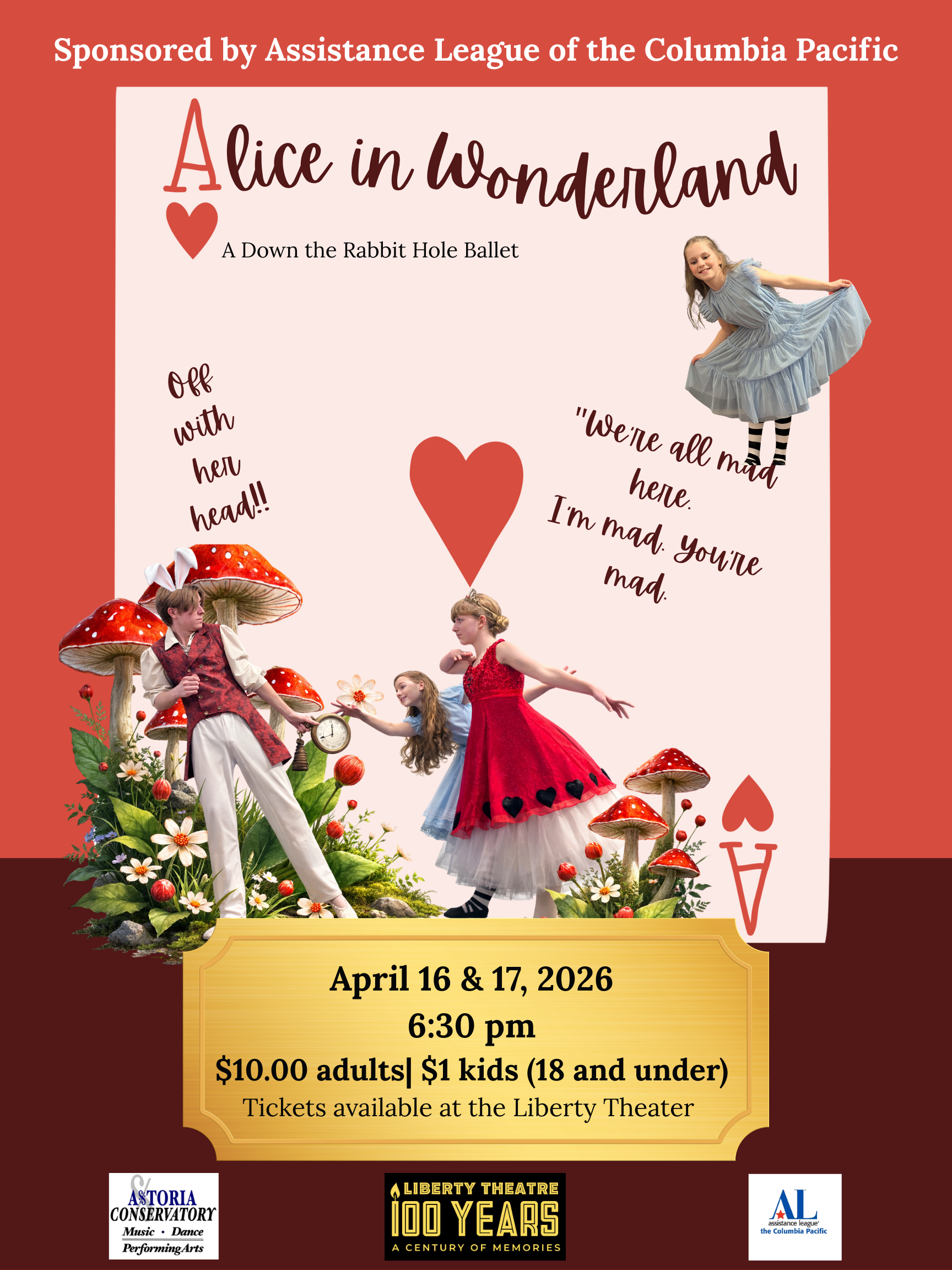 A Down the Rabbit Hole Ballet $10 Adults | $1 Kids (18 and under) Sponsored by Assistance League of the Columbia Pacific